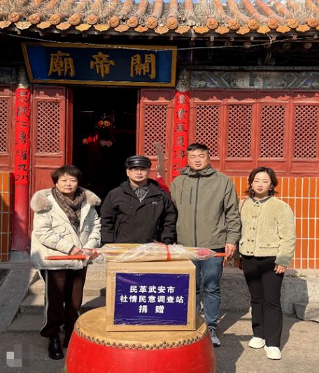 求新社武安:武安市社情民意研究会为贺进西街关帝庙捐赠文艺用品